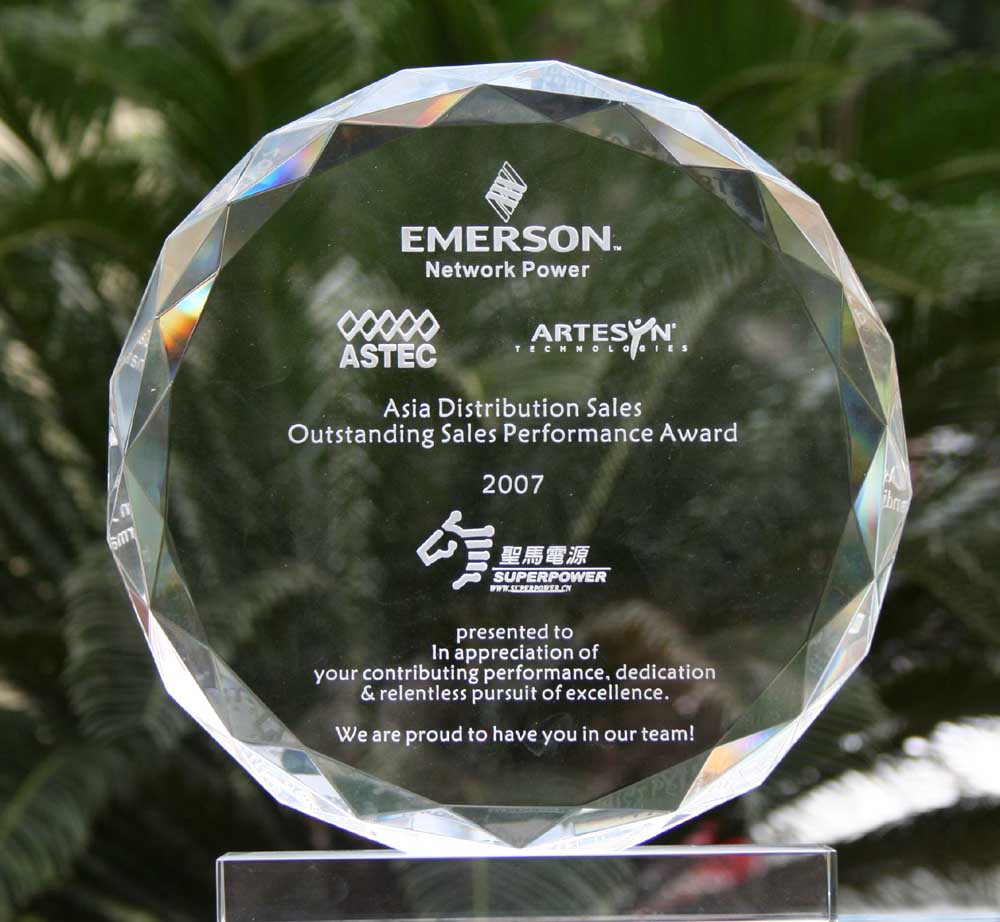 2007年度圣馬電源獲Astec/artesyn亞太區(qū)銷售第一名獎