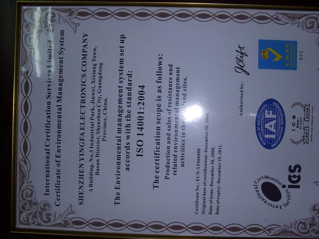 ISO14001環(huán)境體系認(rèn)證證書英文