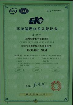 ISO4001環(huán)境管理體系認證證書