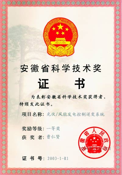 "小功率高性能正弦波逆變電源的研究與開發(fā)"項(xiàng)目資格證書