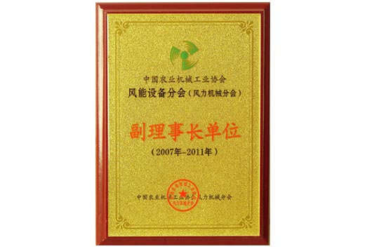 中國(guó)農(nóng)業(yè)機(jī)械工業(yè)協(xié)會(huì)風(fēng)能設(shè)備分會(huì)副理事長(zhǎng)單位證書