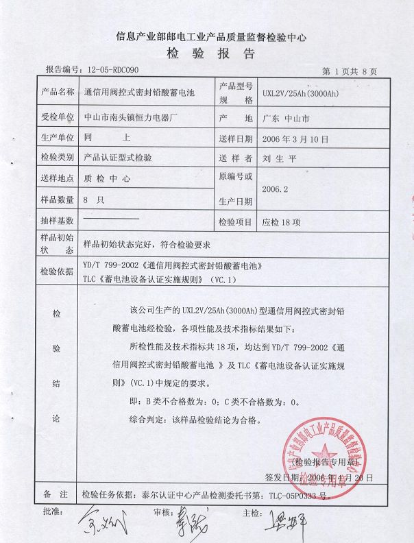 信息產(chǎn)業(yè)部檢驗(yàn)報(bào)告