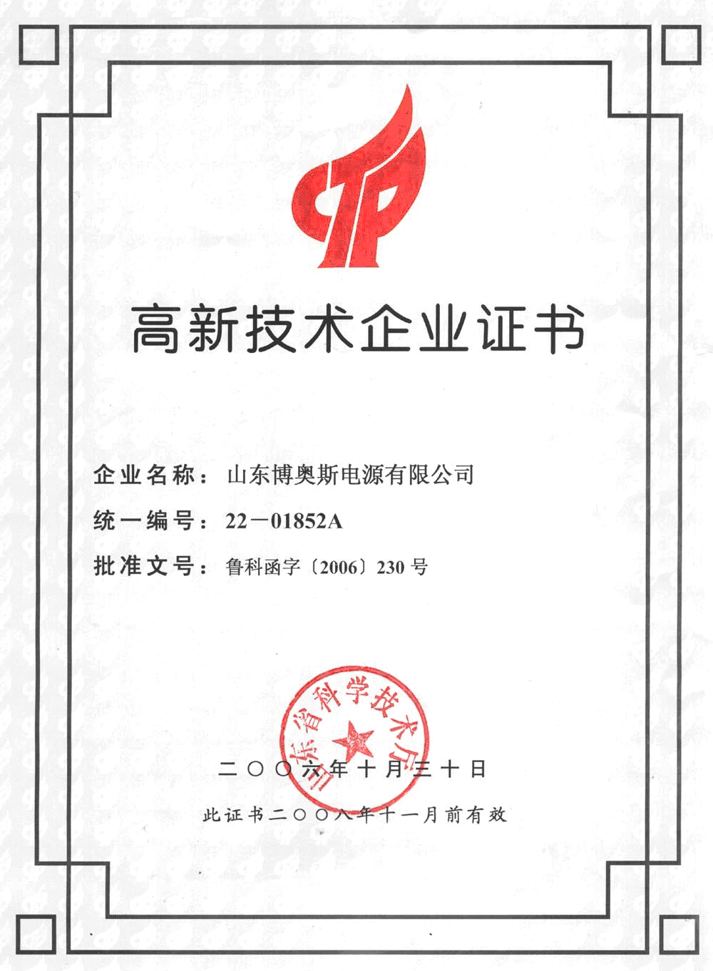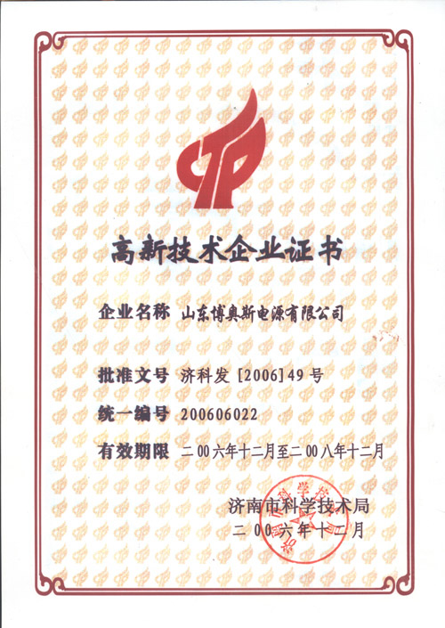 山東省高新技術企業(yè)證書