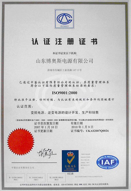 ISO9001質(zhì)量體系認證證書