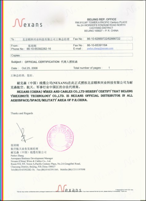 耐克森線纜代理授權(quán)書