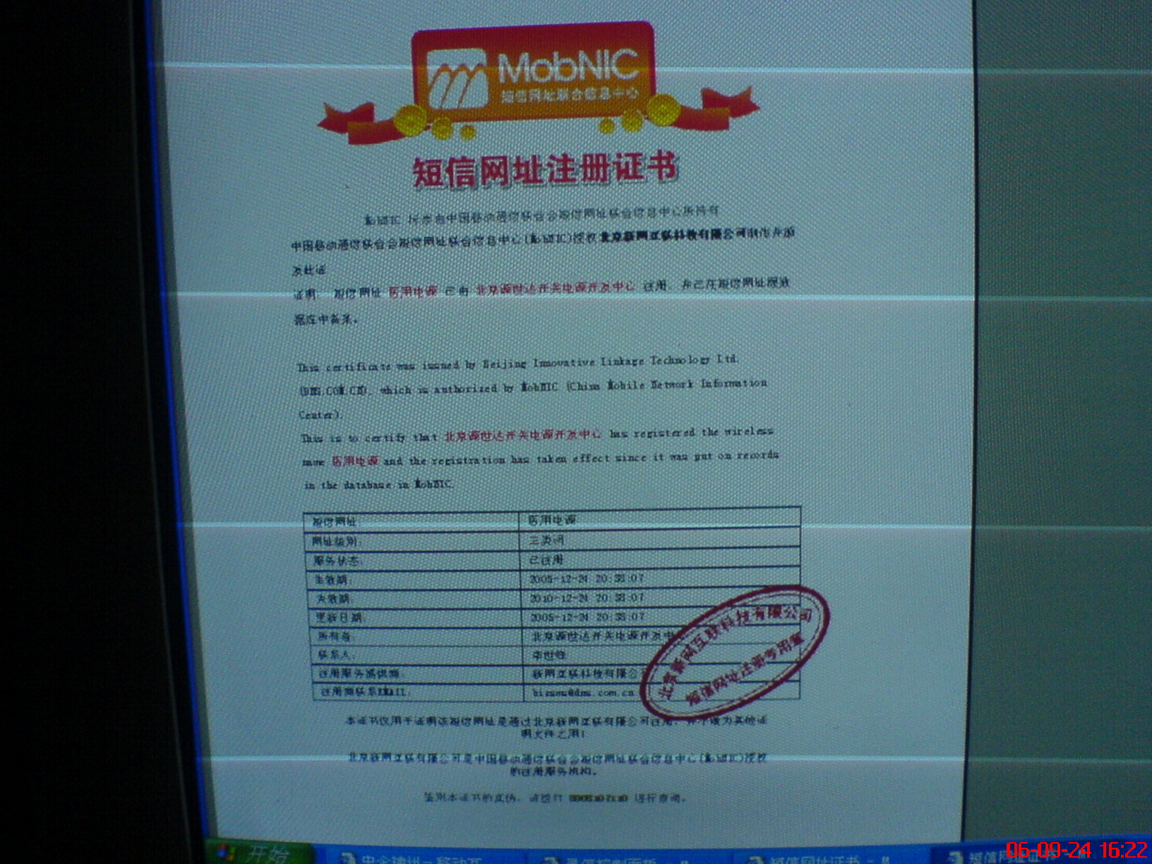 短信網(wǎng)址注冊證書