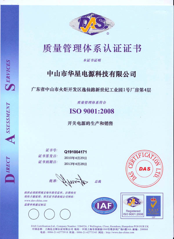 ISO9001:2000質(zhì)量體系認(rèn)證證書