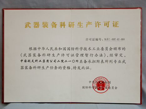 武器裝備科研生產(chǎn)許可證