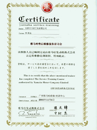 雅馬哈售后服務(wù)證書