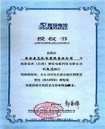(臺灣)賽特免維護蓄電池西北辦事處授權(quán)證書