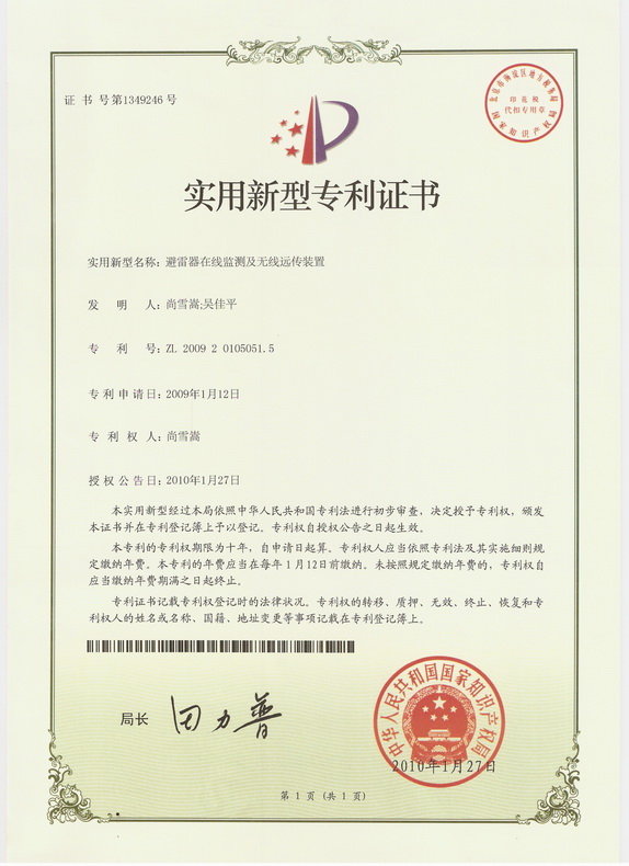 實(shí)用新型專利證書