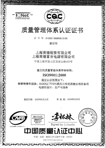 ISO9001質(zhì)量體系認證證書