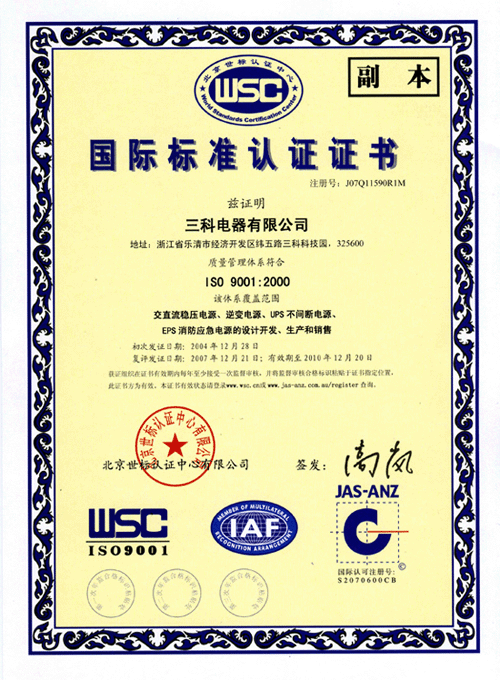三科公司通過ISO9001國際質(zhì)量體系認證認證