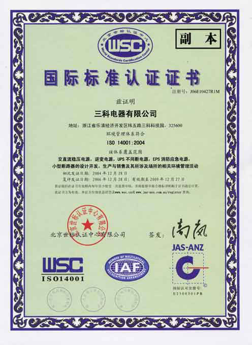 三科公司通過ISO14001環(huán)境管理體系認證
