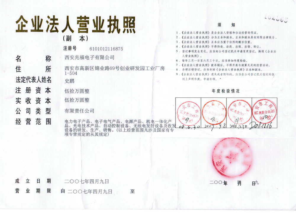 西安兆福營(yíng)業(yè)執(zhí)照
