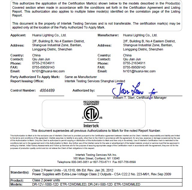 美洲ETL認證證書10W