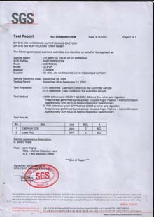產(chǎn)品符合環(huán)境檢測(cè)SGS證明書