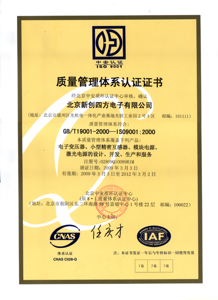 ISO9001:2000質(zhì)量體系認證證書