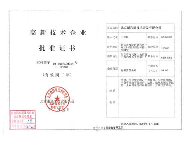 高新技術(shù)企業(yè)證書
