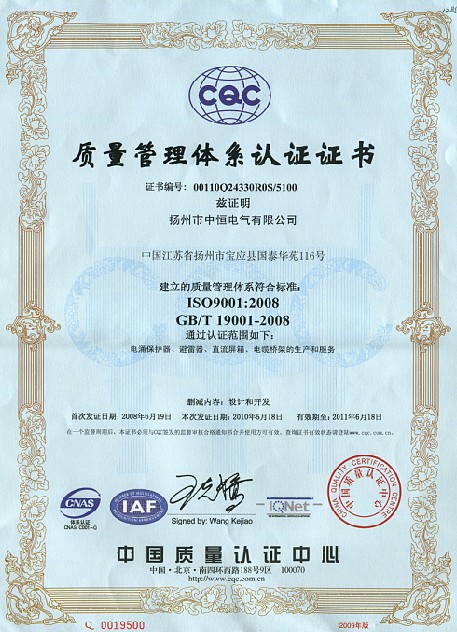 ISO9001質(zhì)量體系認(rèn)證證書(shū)