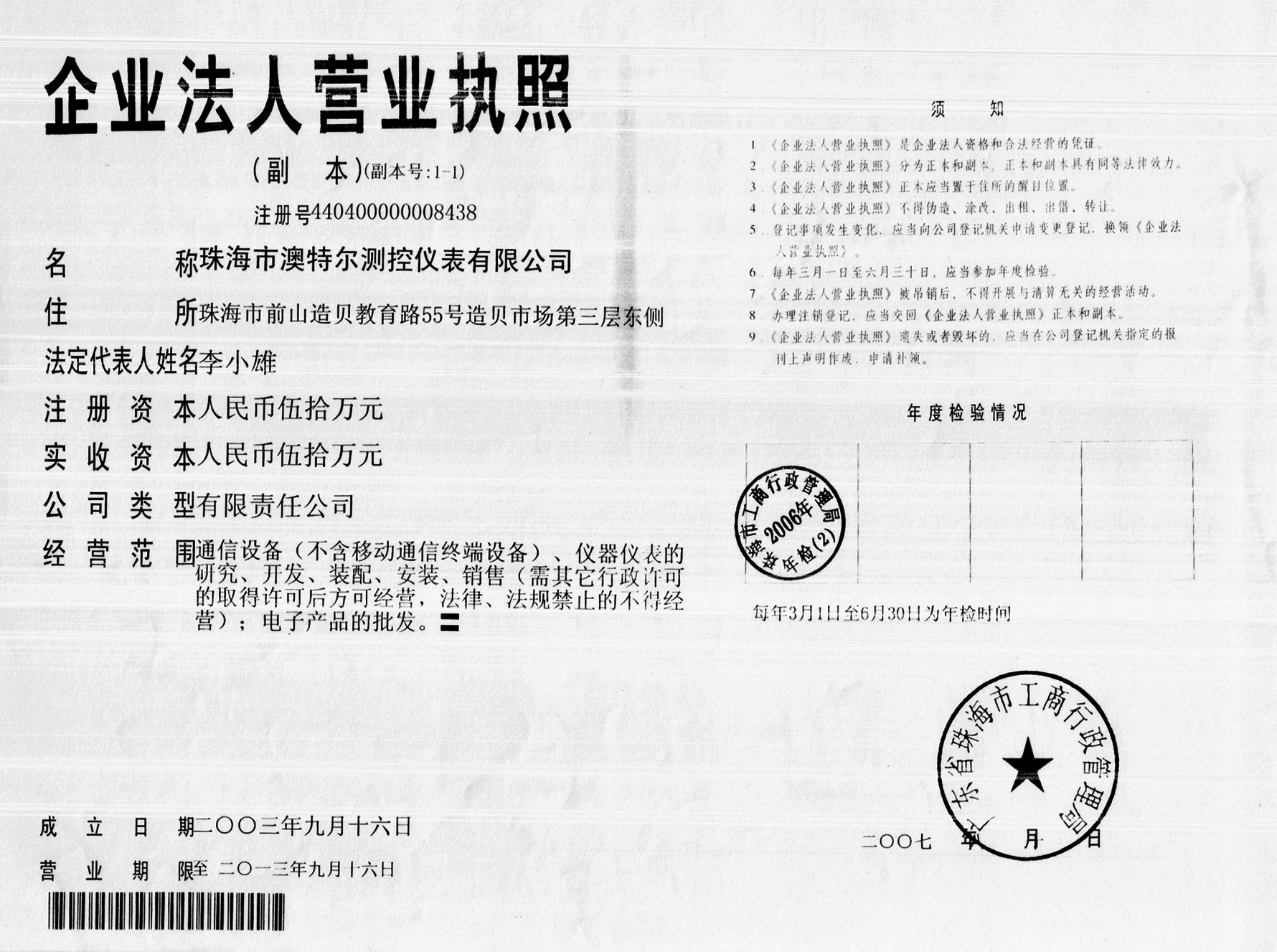 珠海市澳特爾測(cè)控儀表有限公司