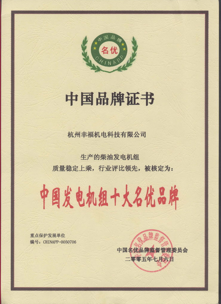 中國品牌證書