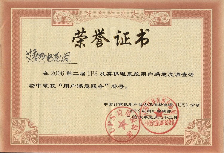 UPS用戶滿意證書