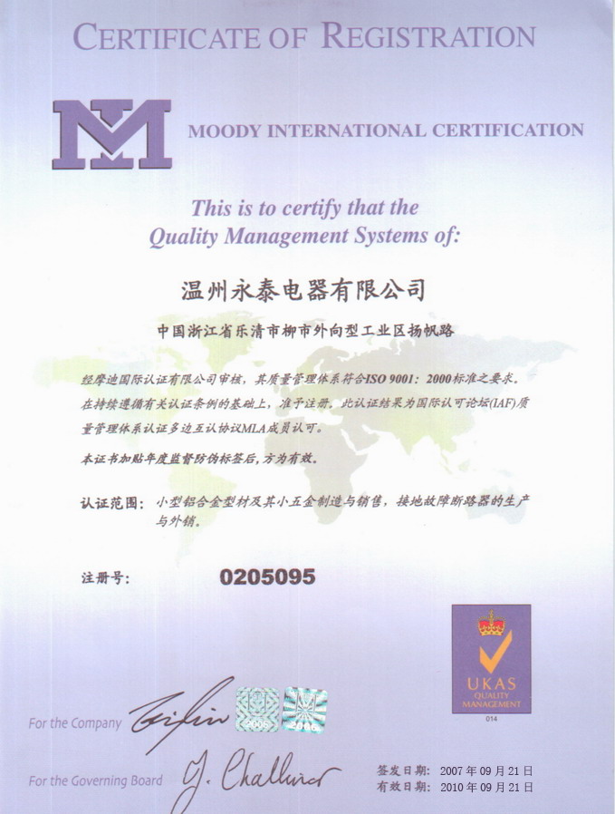 ISO9001質(zhì)量體系認證證書
