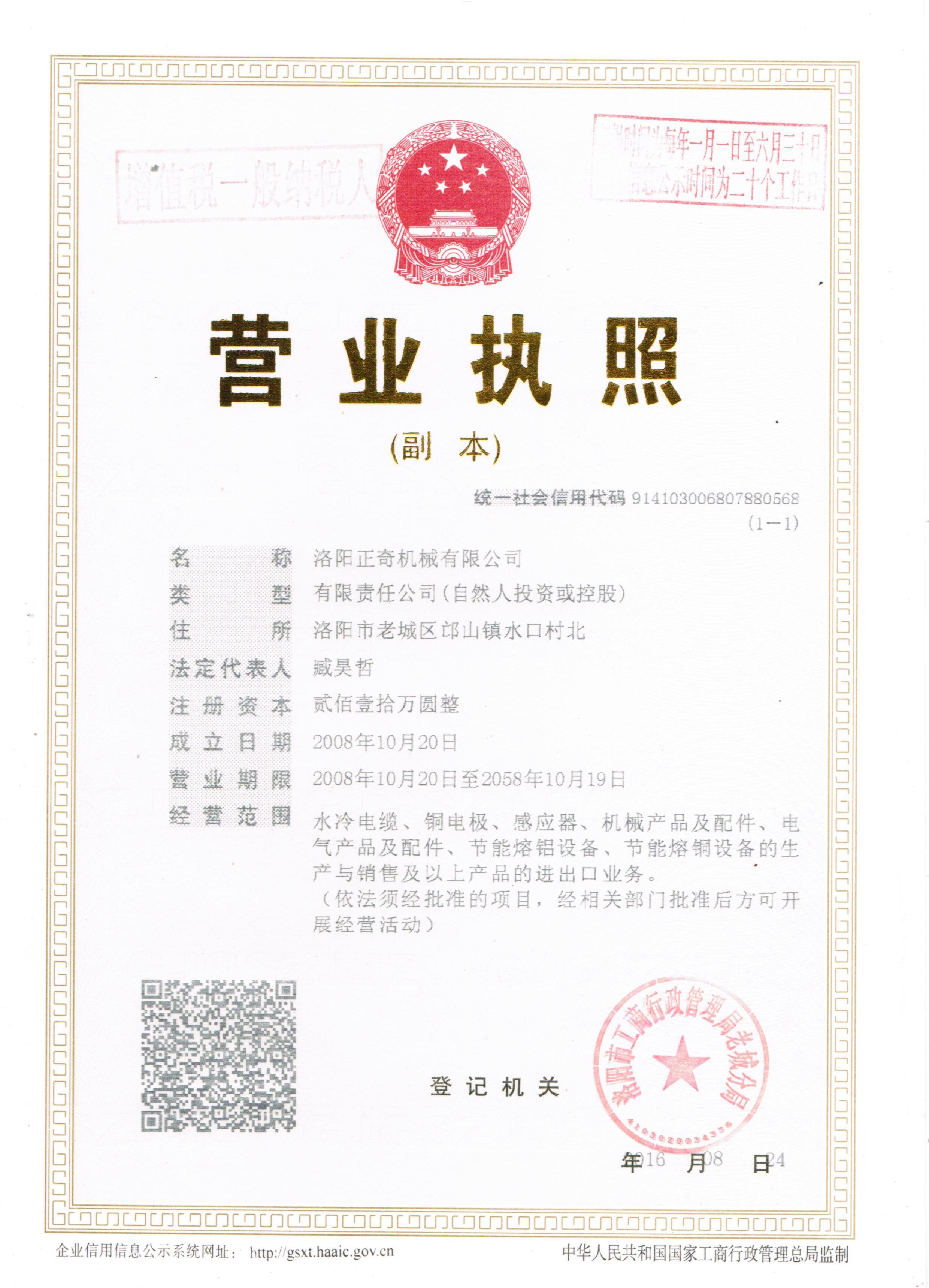 洛陽正奇機械有限公司營業(yè)執(zhí)照