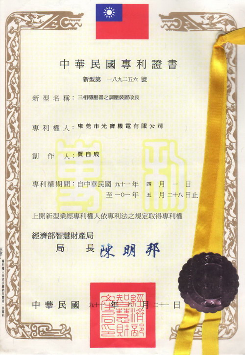 中華民國(guó)專利證書