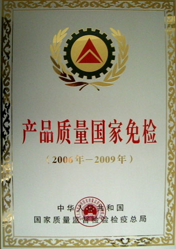產(chǎn)品質(zhì)量國(guó)家免檢證書
