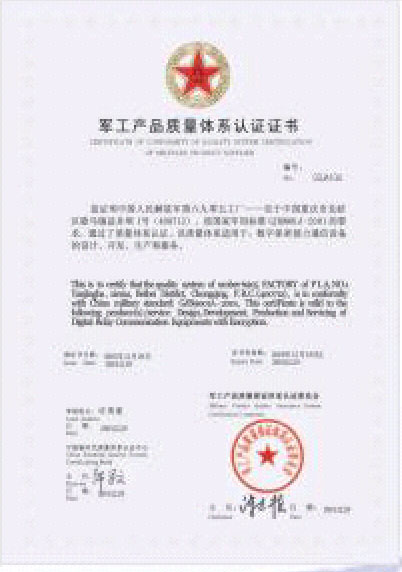GJB9001質量體系認證證書