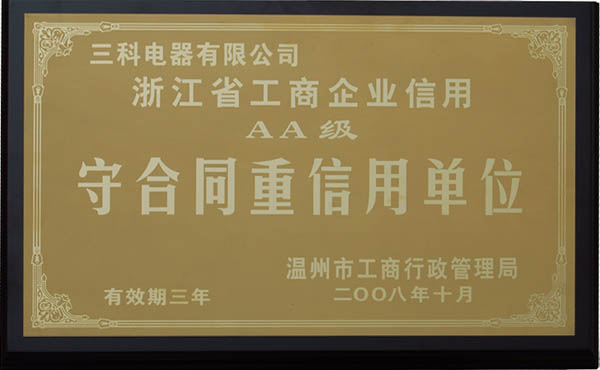 浙江省工商企業(yè)信用AA級守合同重信用單位