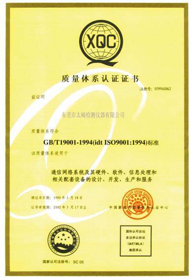 ISO9001質(zhì)量體系認(rèn)證證書(shū)