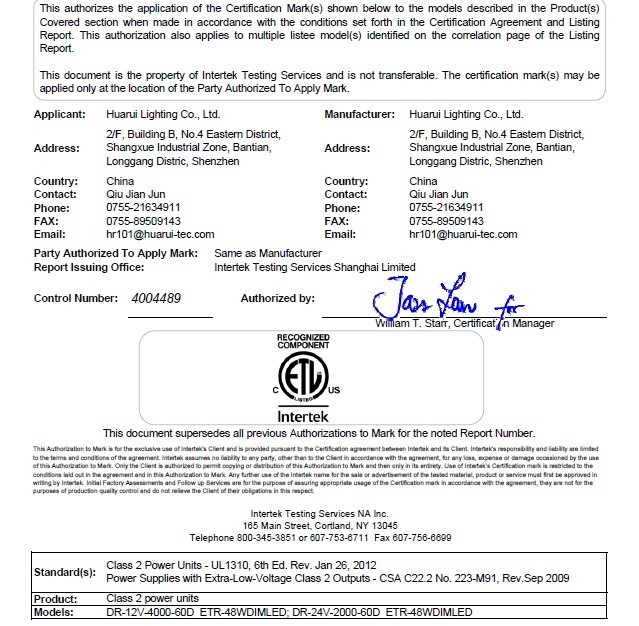 美洲ETL認證證書10W