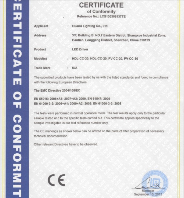 DALI調(diào)光CE證書