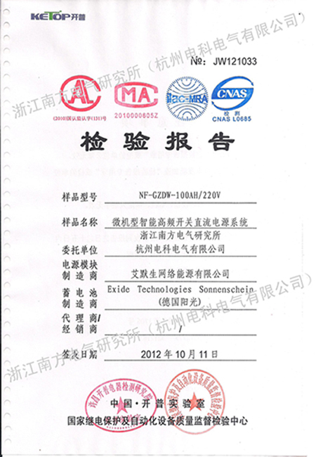 站用一體化電力電源專利證書