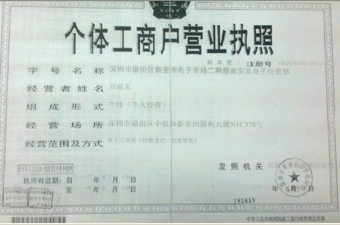 深圳市福田區(qū)新亞洲電子市場二期新威榮發(fā)電子經(jīng)營部